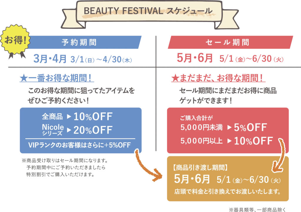 大阪の美容室アパカバールグループでは、人気アイテムや新商品がお得に買えるBEAUTY FESTIVALを開催中♡一番お得に購入できる予約期間は4月30日(木)まで♪